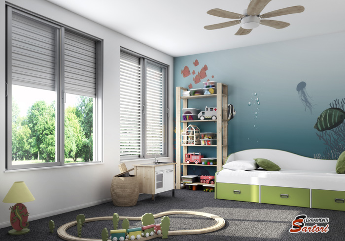 Con la funzione a stecche orientabili permettono la schermatura, la protezione dalle radiazioni solari dirette, favoriscono il riciclo dell’aria consentendo una naturale climatizzazione degli ambienti.