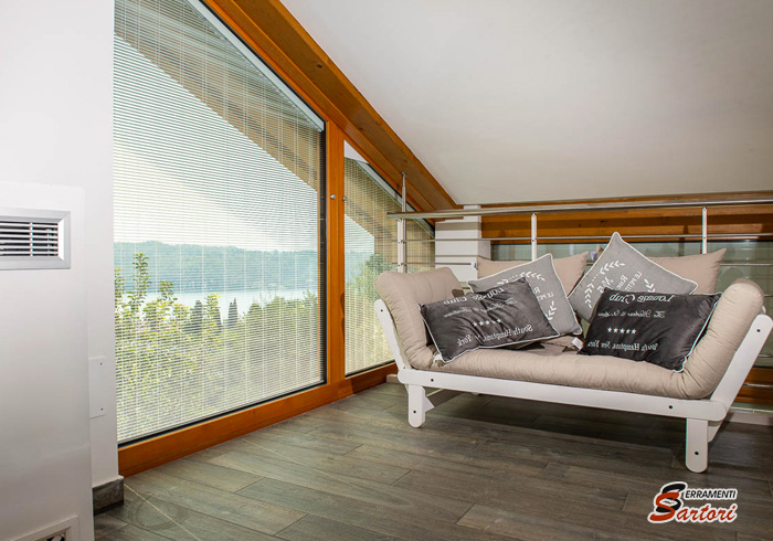 Esistono anche nella variante all’interno del vetro: vengono poste all’interno della vetrocamera. Con questa alternativa si recupera spazio, si aumenta la longevità della veneziana, rimangono sempre pulite e non hanno bisogno di particolare manutenzione.